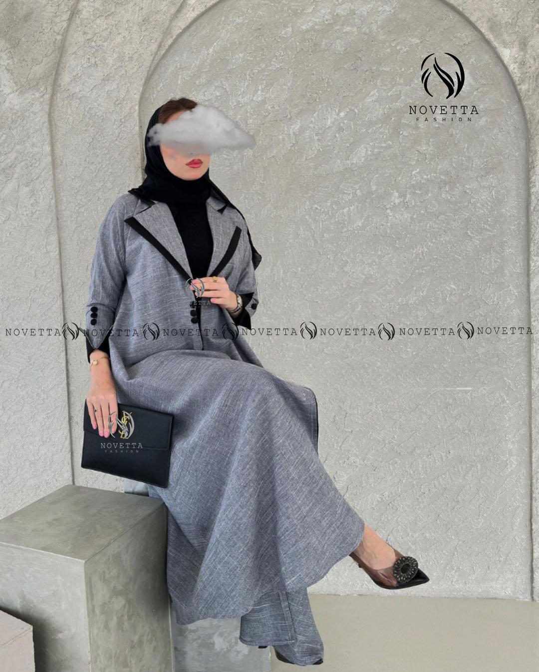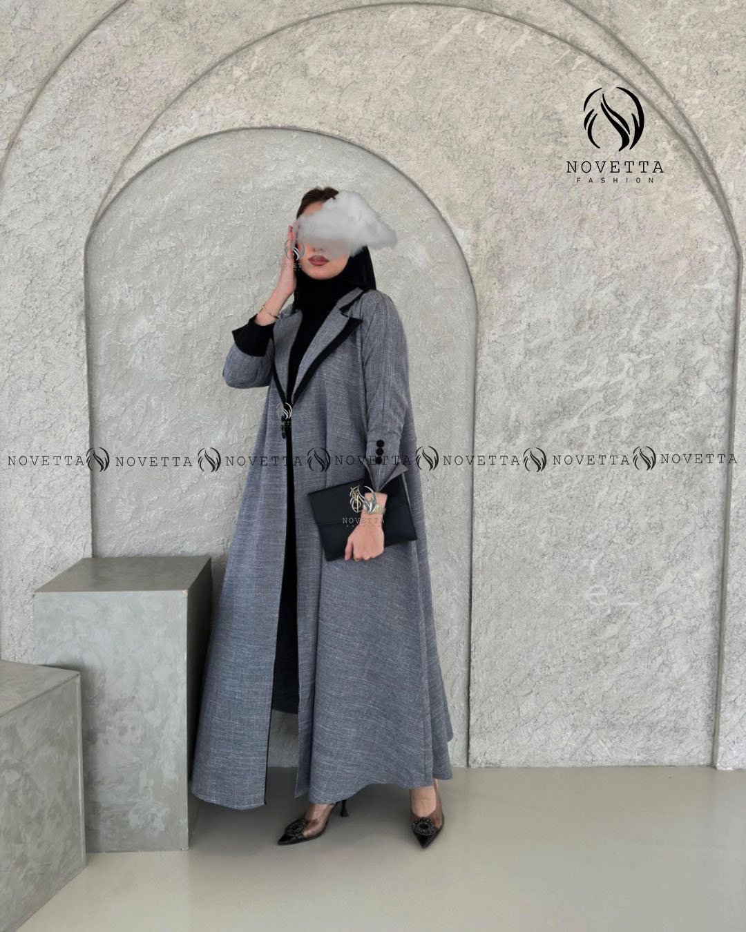 عباية بليزرية بتصميم فاخر يجمع بين الأناقة الكلاسيكية. خامة رمادية راقية بتفاصيل سوداء على الياقة والأكمام تمنح تباين فخم ولمسة احترافية تعكس أسلوب المرأة الواثقة. بخامةملنج مع مخمل اسود داكن ومبطن, المقاسات وافية واسعة