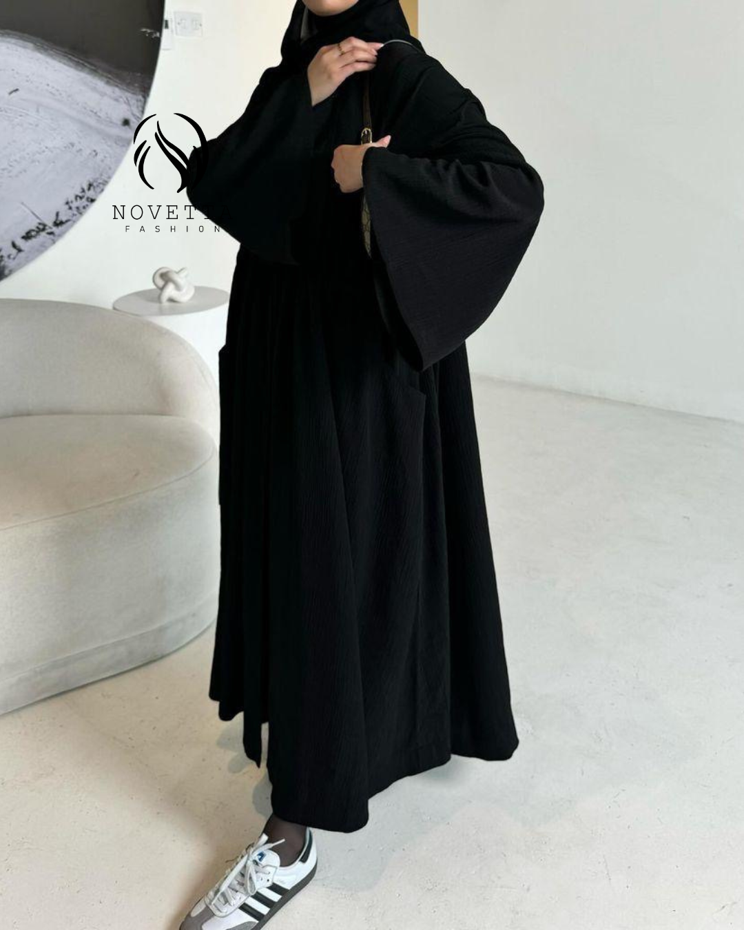 عباية كاجوال أنيقة بتصميم عملي وعصري يناسب الحياة اليومية، بتفاصيل خفيفة ولمسة انسيابية تمنح راحة وأناقة في آنٍ واحد.بخامة خاصة تعكس لمسة نوفيتا ,والمقاسات وافية واسعة