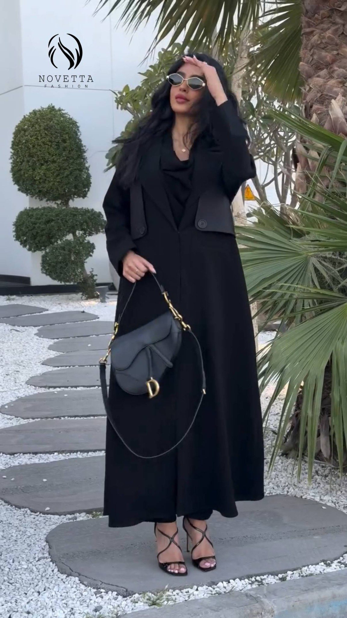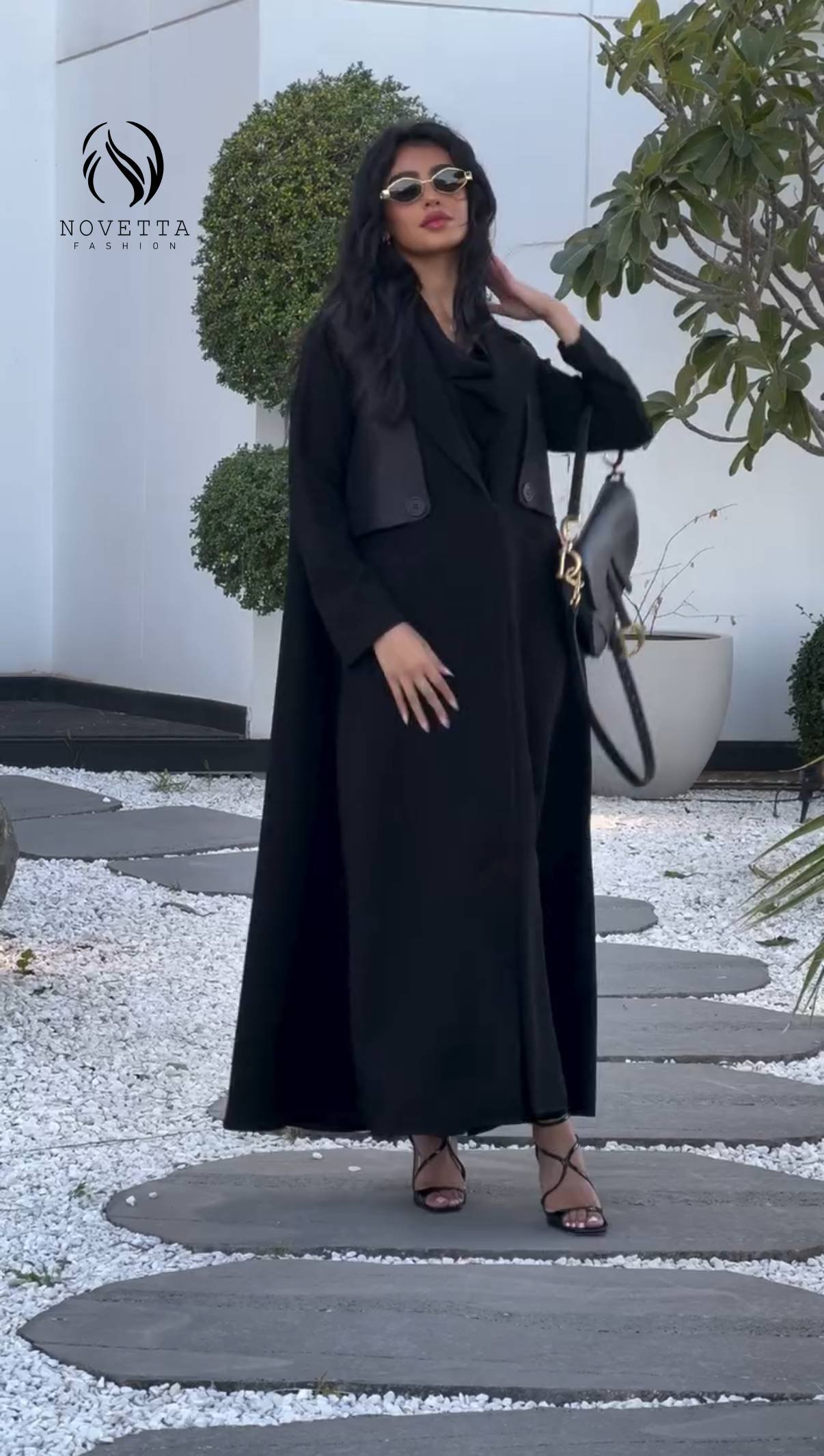 عباية فاخرة بتفاصيل جلد راقية ولمسة خريفية تمنحك إطلالة أنيقة ودافئة تجمع بين الكلاسيكية والعصرية.بخامة بورتريكو كورية تقيلة وناعمة سواد داكن والمقاسات وافية وواسعة