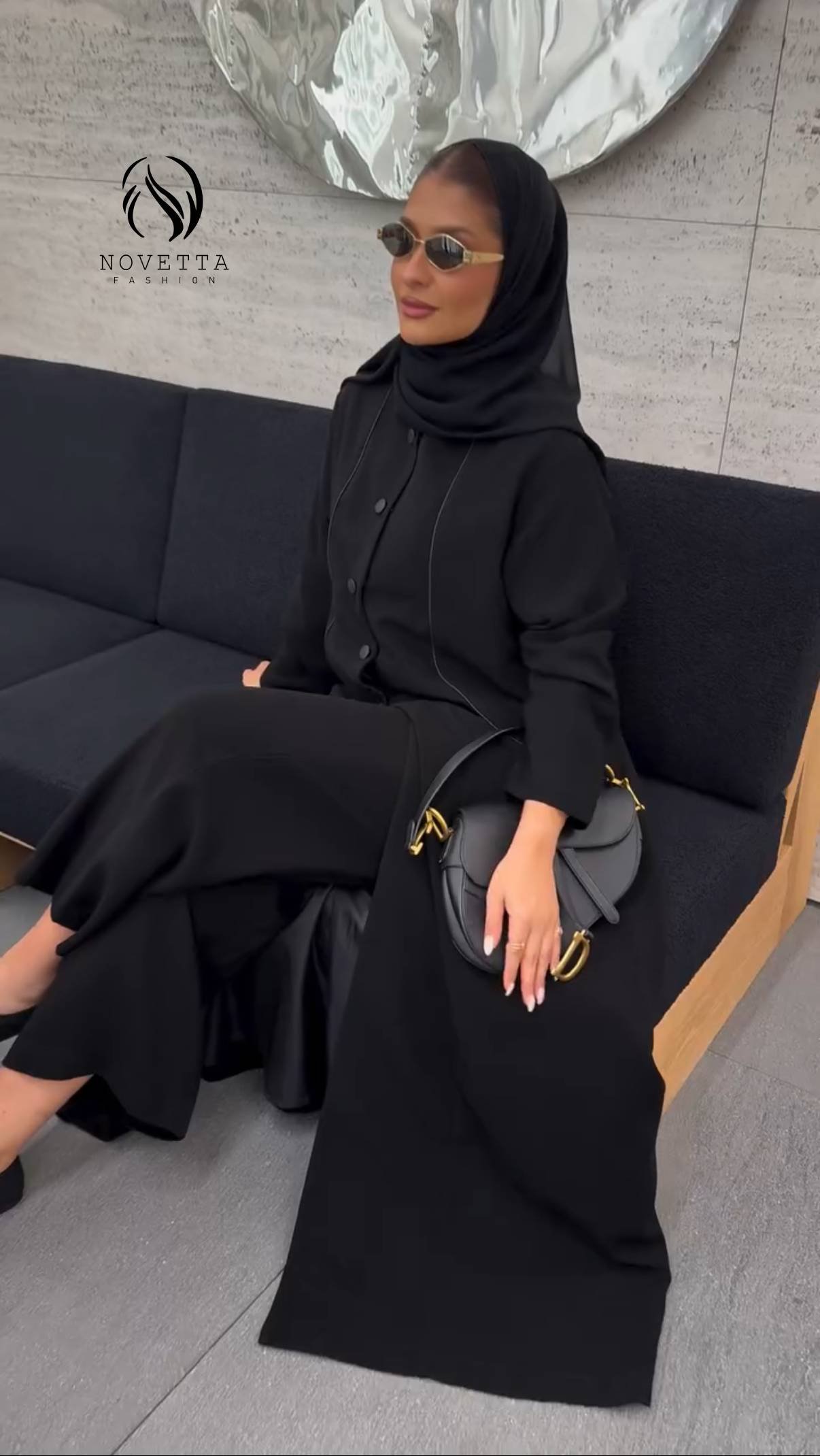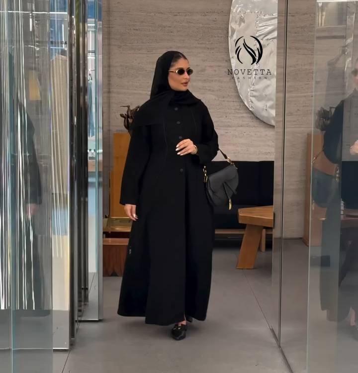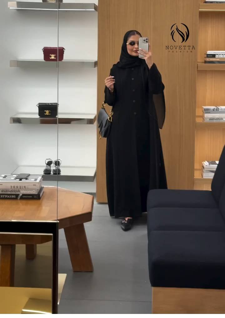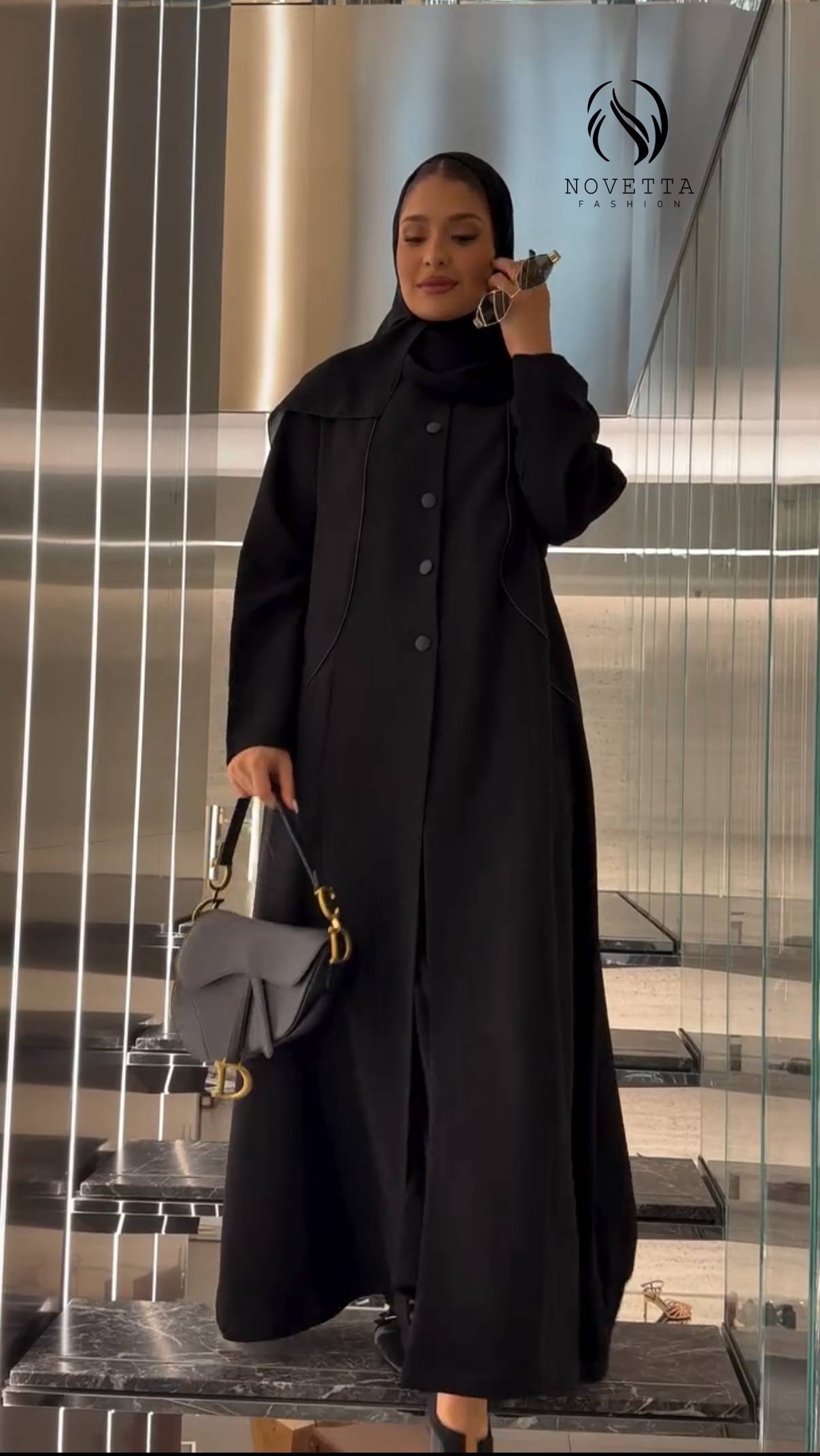 عباية بتصميم راقٍ يجمع بين اللمسة الكلاسيكية والخطوط العصرية، تمنحك أناقة هادئة تليق بكل لحظة من يومك.بخامة كوبا بورتريكو كورية تقيلة وهدلة وناعمة وسواد داكن ,الخطوط والازرار ستان والمقاسات وافية وواسعة