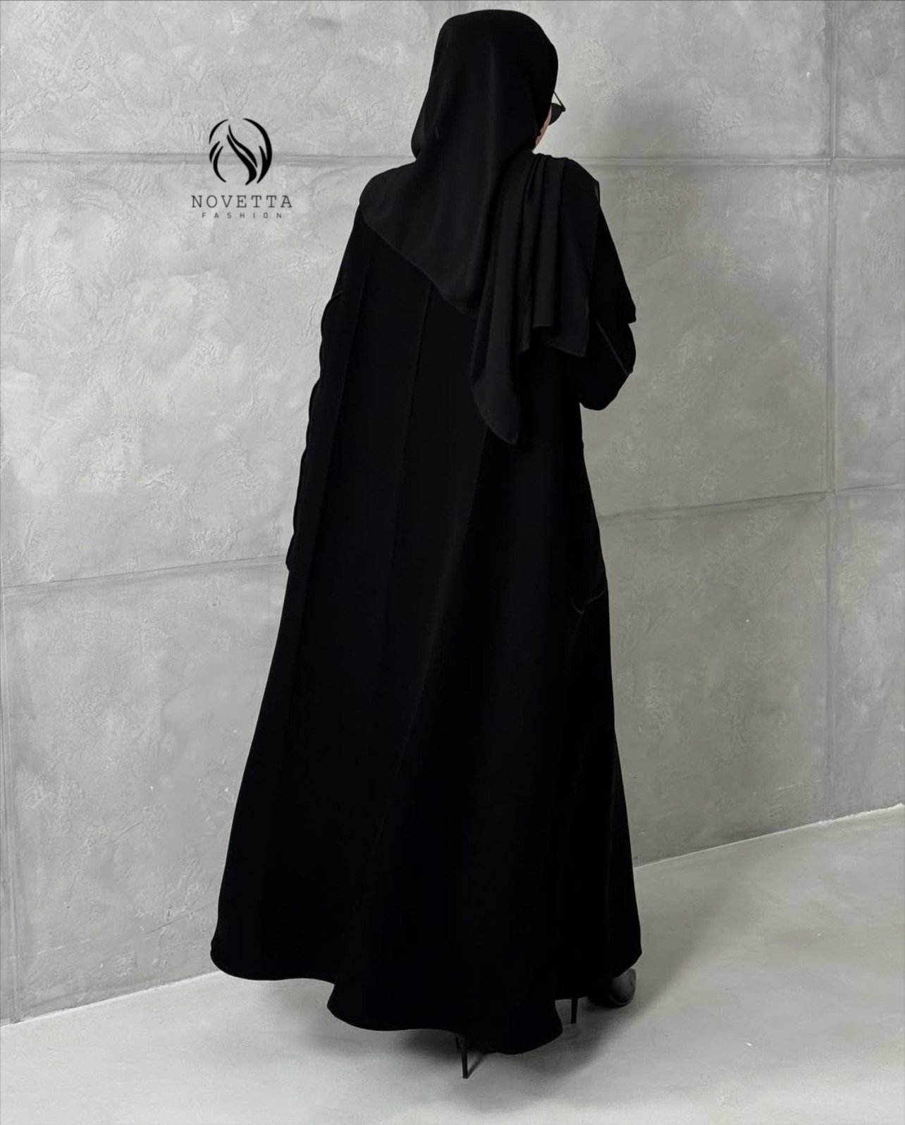 عباءة بتصميم انسيابي طويل،تأتي بقصّة مستقيمة راقية تمنح حضورًا هادئًا وهيبة واضحة.