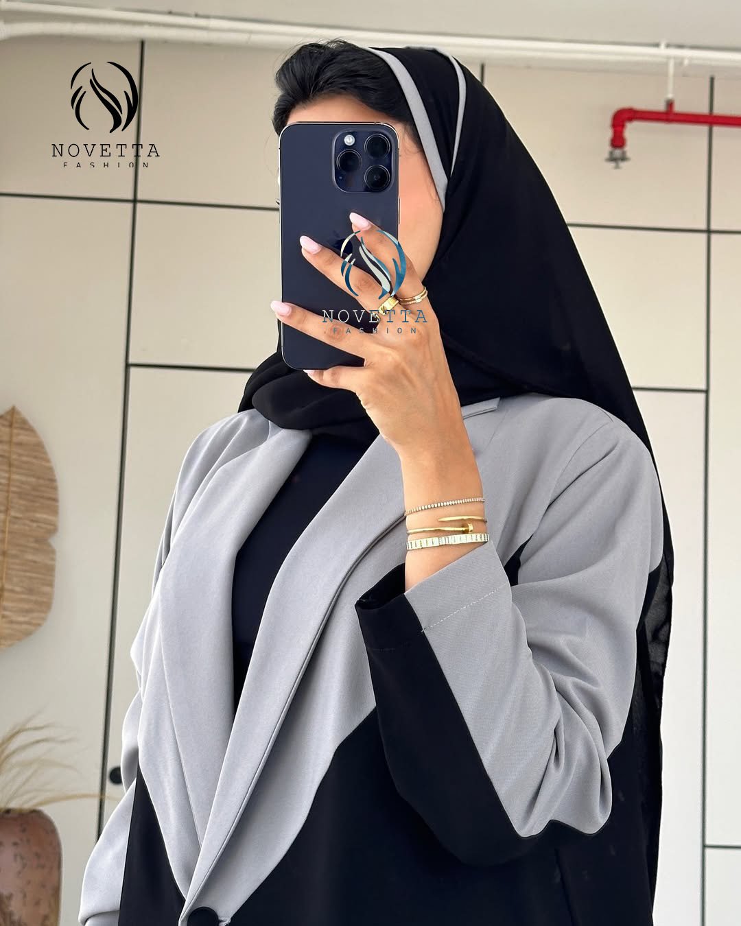 عباية فاخرة بتصميم أنيق وانسيابي، بأكمام واسعة مزينة بربطة جانبية وأزرار ناعمة تضيف لمسة أنثوية راقية.بخامة فكتوريا كوري والمقاسات وافية وواسعة