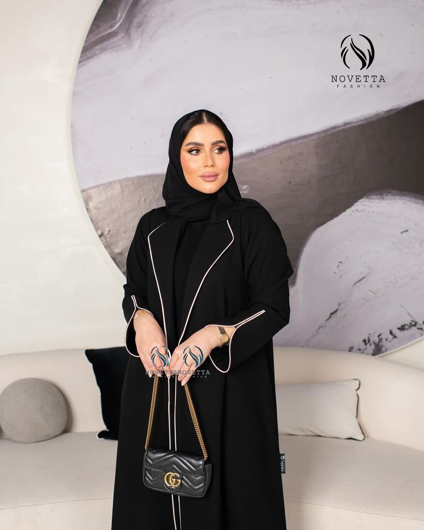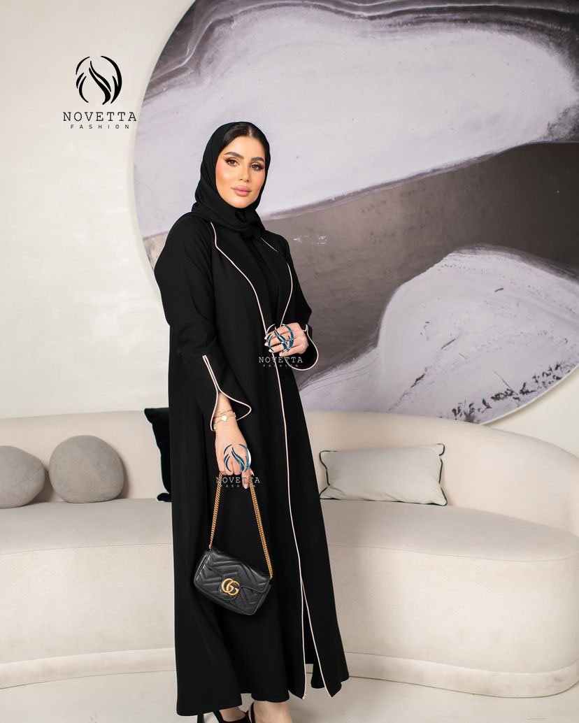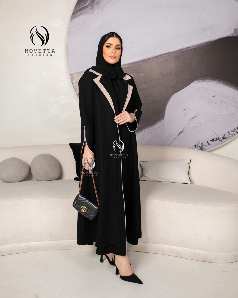 عباية سوداء فاخرة بتفاصيل بيج ناعمة على الأطراف تضيف لمسة أناقة مميزة. القَصّة انسيابية مع لمسة عصرية، مناسبة للمرأة الراقية التي تجمع بين البساطة والجاذبية. قطعة مثالية للإطلالة الرسمية والكاجوال، تعكس ذوقك الرفيع بكل أناقة.بخامة حبر الفرسان والمقاسات وافية وواسعة
