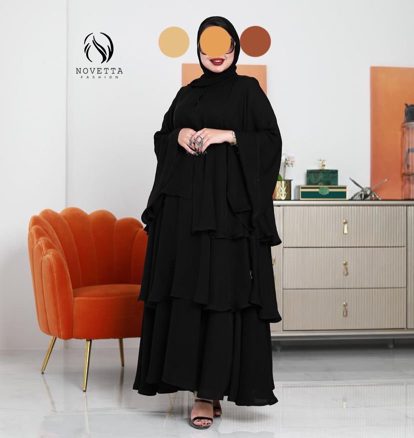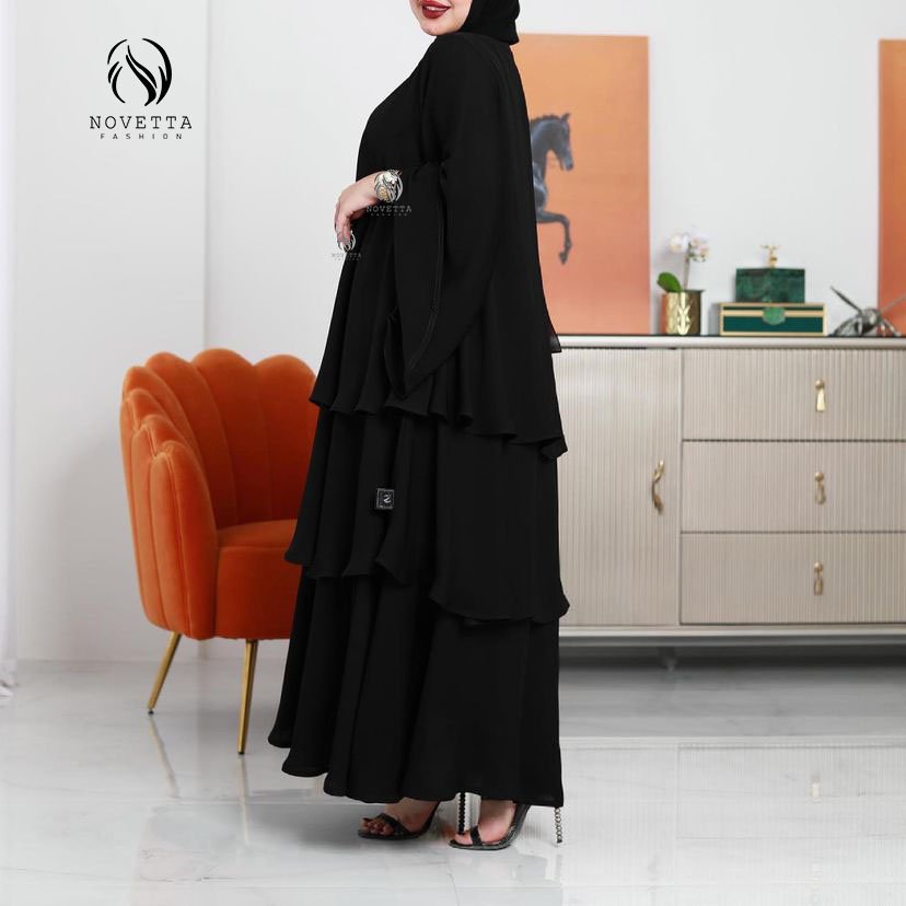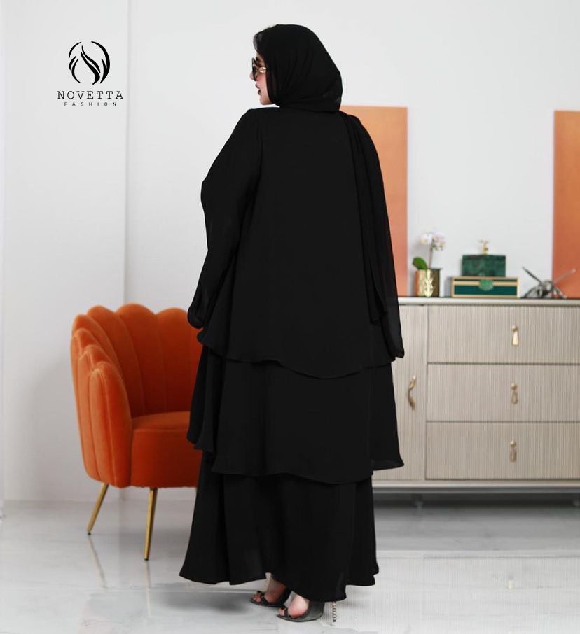 عباية بطبقات انسيابية متدرجة تمنحك مظهراً أنيقاً وفخماً مع لمسة عصرية تناسب جميع المناسبات.