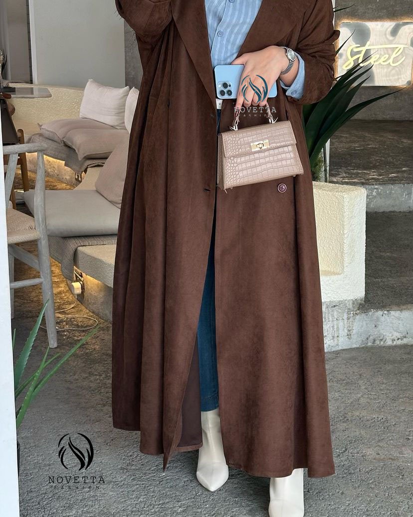 عباية سويد ناعمة ، قصّة أنيقة وعملية تناسب الخروجات الكاجوال والستايل العصري.بخامة شامواه والمقاسات وافية وواسعة