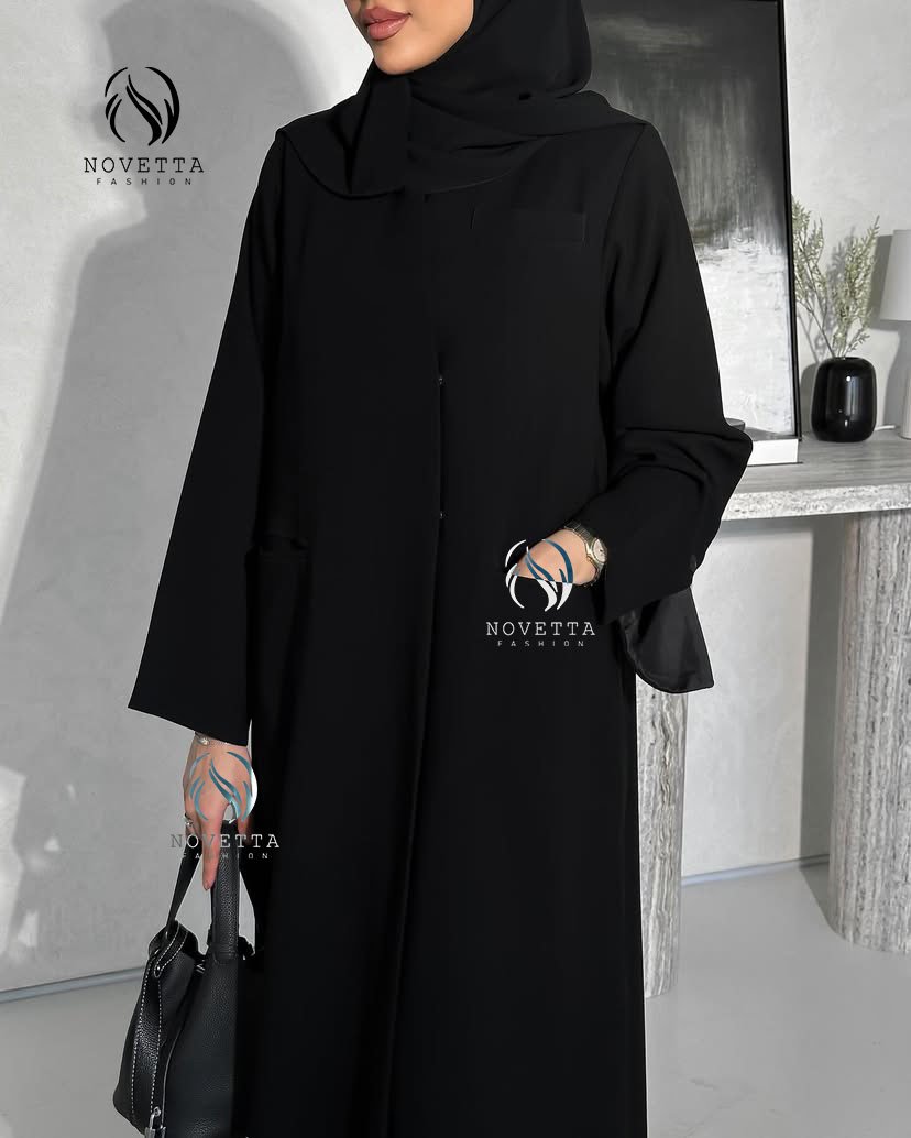 تصميم عملي باللون الأسود الكلاسيكي، قصّة واسعة مريحة مع تفاصيل بسيطة تضيف لمسة أناقة عملية.بخامة فكتوريا كوري شديدة السواد والمقاسات وافية وواسعة